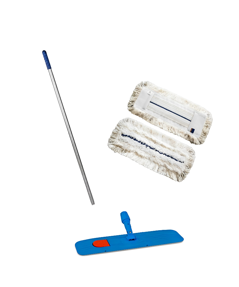 Grindų plovimo komplektas su HOSPITAL šluoste, 40 cm (aliuminis kotas, laikiklis, šluostė)