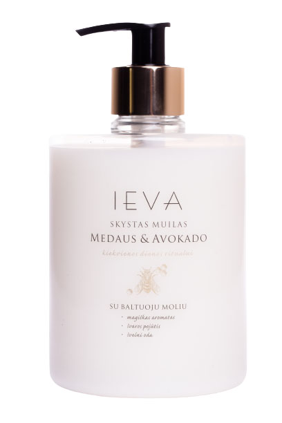 SKYSTAS MUILAS IEVA MEDAUS IR AVOKADO 0,5 L Švelnus skystas muilas praturtintas švelniais odą puoselėjančiais priedais: baltuoju moliu ir vitaminu E. Baltajame molyje esantis kaolinas absorbuoja riebalų perteklių pašalina, negyvas ląsteles, tonizuoja, atkuria, maitina odą mineralais, ją balina. Vitaminas E drėkina odą, suteikia elastingumo ir lygumo. Be dažiklių. Ingredients: Aqua, Sodium Laureth Sulfate, Sodium Chloride, Glycerin, Cocamidopropyl Betaine, Cocamide DEA, Coco Glucoside, Glyceryl Oleate, Kaolin, Styrene/Acrylates Copolymer, Sodium Lauroyl Glutamate, Tocopheryl Acetate, Citric acid, Parfum, Hexyl Cinnamal, Benzyl Alcohol, Methylchloroisothiazolinone, Methylisothiazolinone.