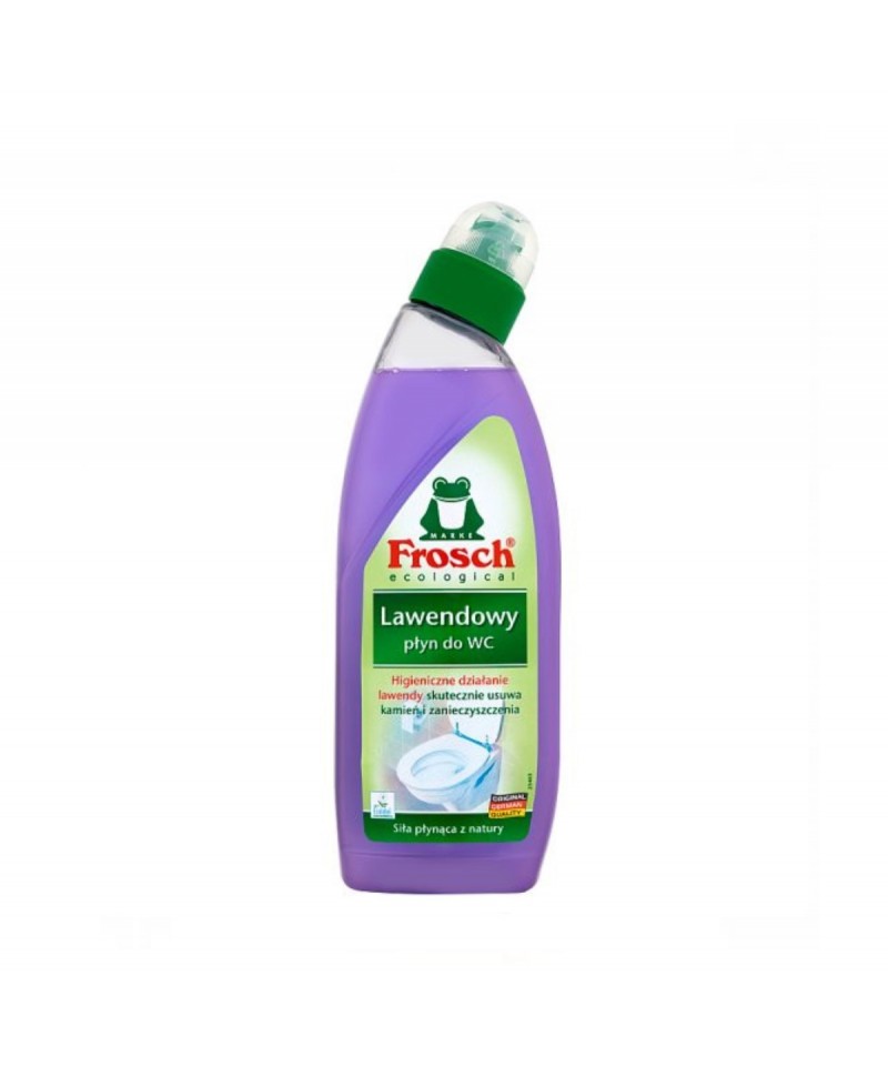 Wc valiklis Frosch levandų kvapo 750 ml- ekologiskas levandų kvapo valymo priemonė klozeto priežiūrai. Puikiai nuvalo purvą, šlapimo apnašas, tirpdo kalkes. Panaudojus šią priemonę tualete ilgai išlieka gaivus kvapas.